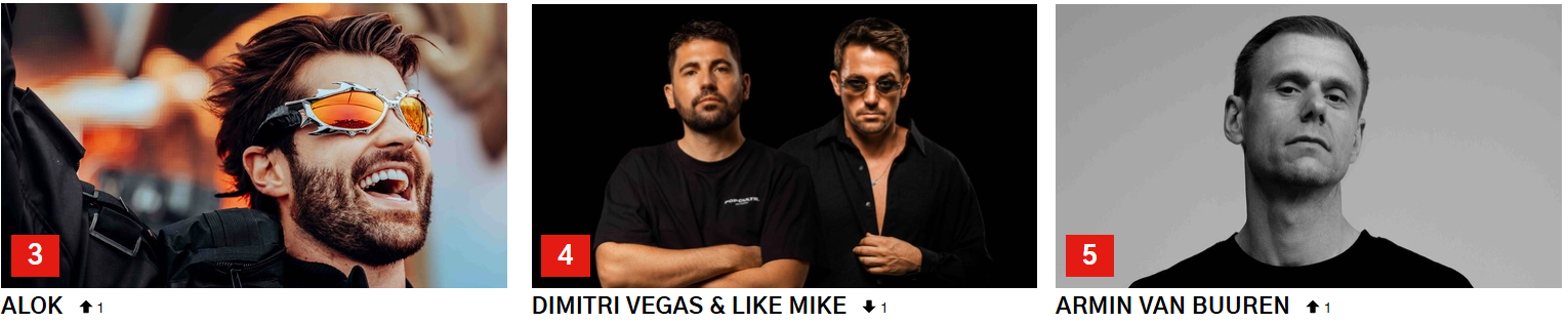 そのほかTOP 10には、Alokが3位、Dimitri Vegas & Like Mikeが4位、Armin van Buurenが5位と、世界のダンスシーンを牽引する常連勢が上位にランクインした。
