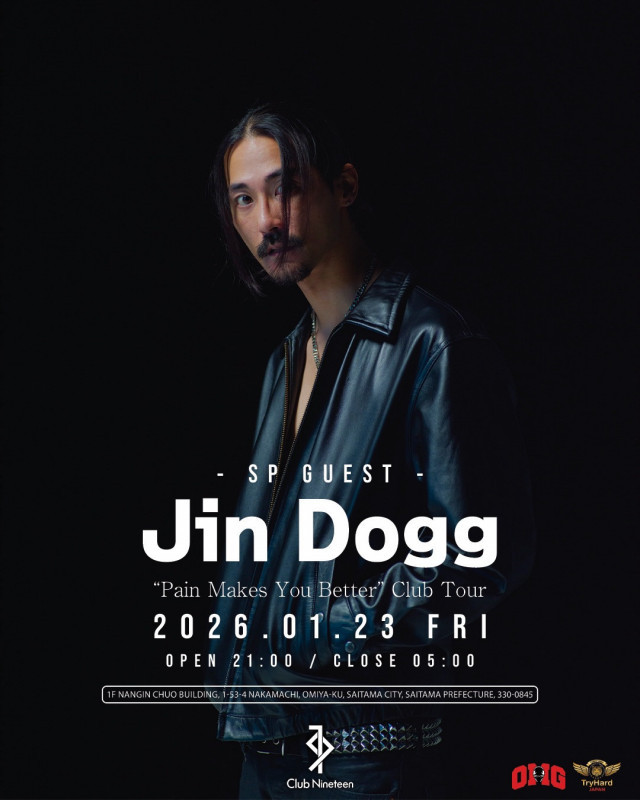 2026年1月23日(金)、大阪・生野区出身のトライリンガル・ラッパー Jin Dogg が Club Nineteen(大宮) に登場。