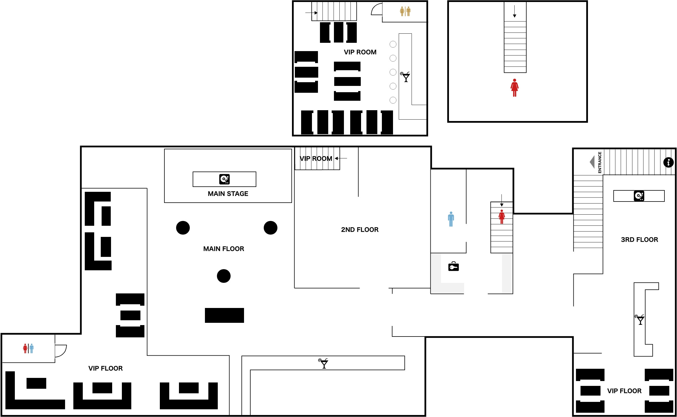 大阪・心斎橋(ミナミ)のクラブ【PURE(ピュア)】のフロアマップ情報・VIP予約