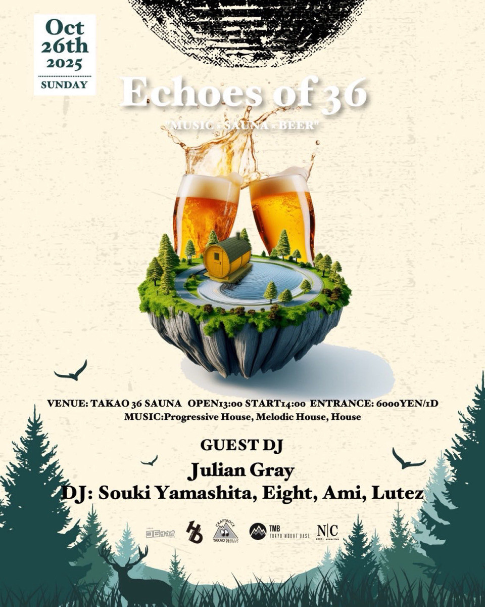 そんな「TAKAO 36 SAUNA」を完全貸切した特別イベント 「Echoes of 36」 が、10月26日(土)に開催決定!